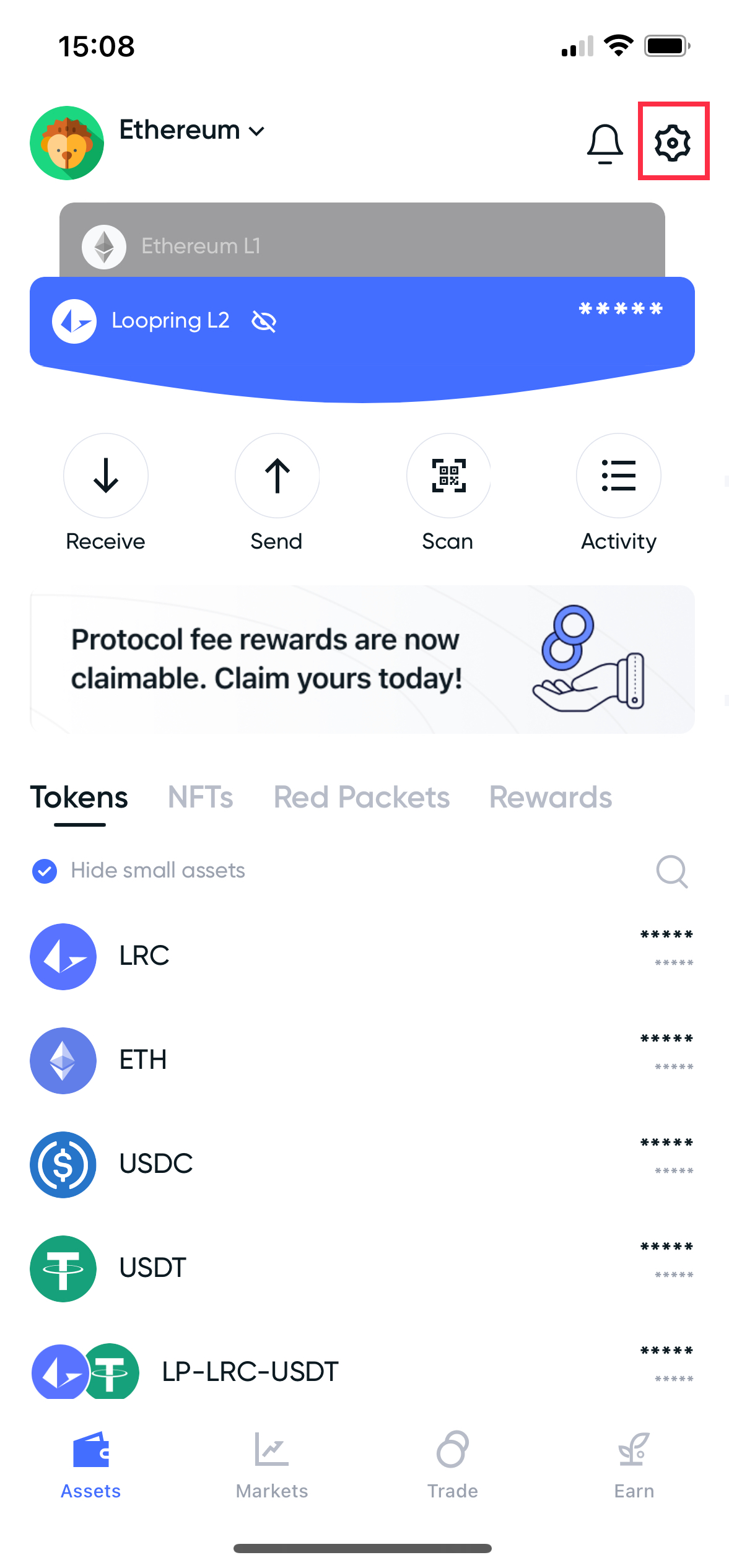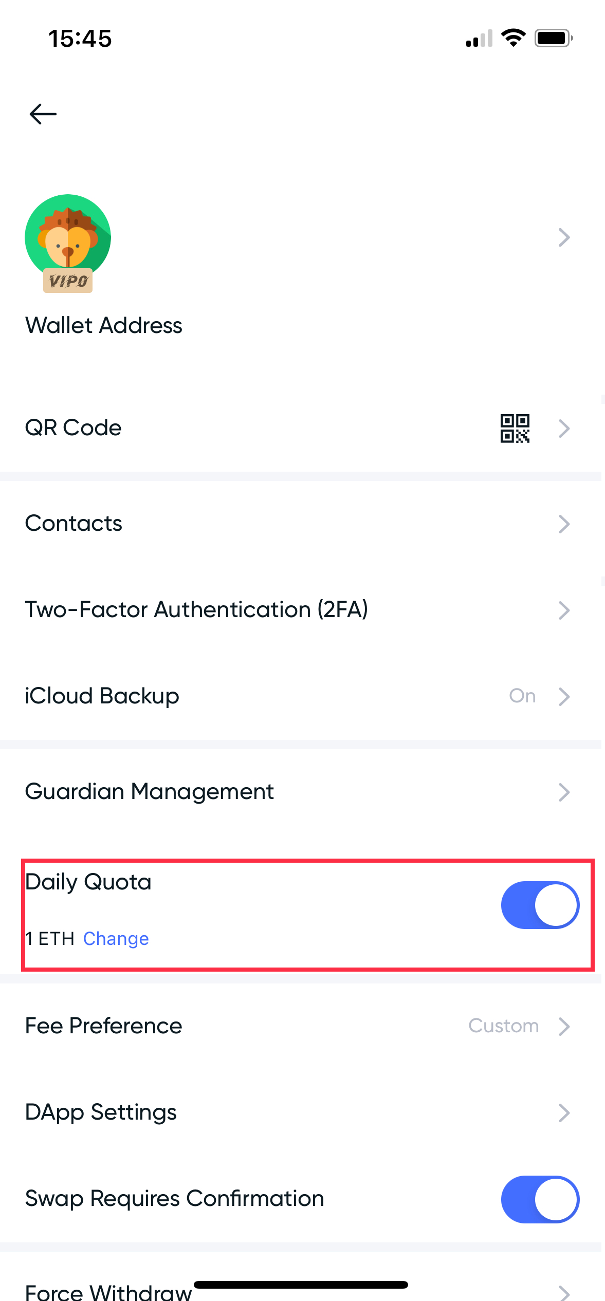 The daily quota is used to set a limit for the maximum value of your tokens that can be transferred within a 24-hour period. Using this feature will help protect your digital assets in the unfortunate event that your wallet is compromised. Each Loopring Smart Wallet app is initially set up without a quota. Use the instructions below to change your settings.<br>