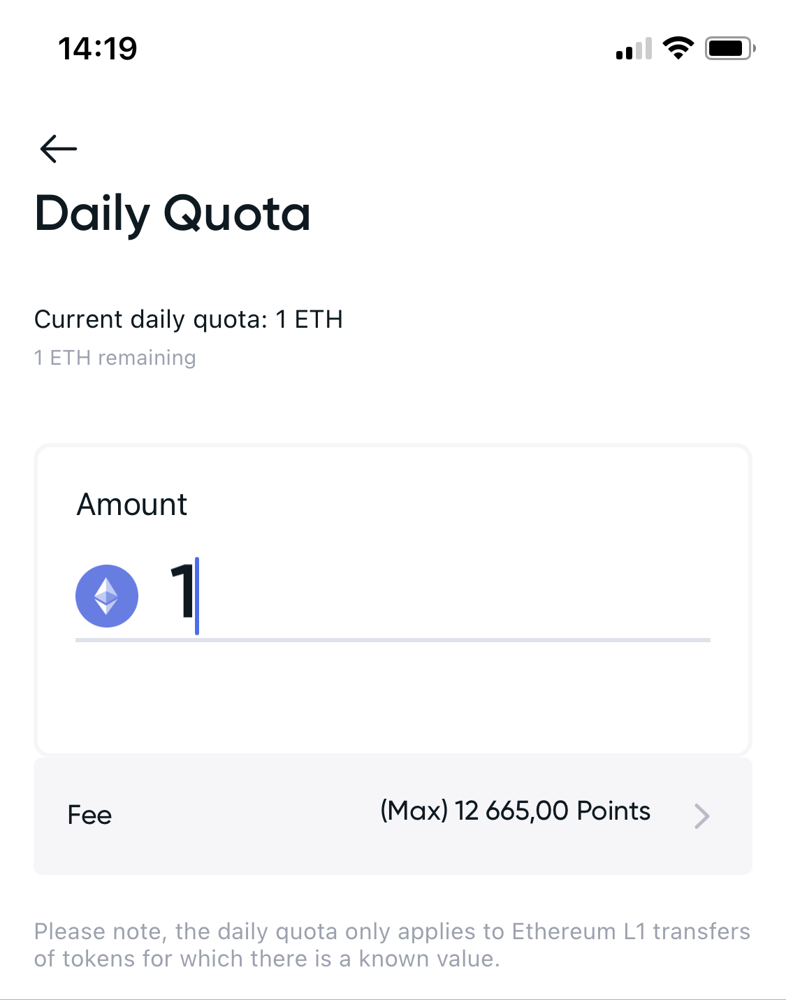 Note: The daily quota also applies to deposits between the wallet’s L1 and L2.